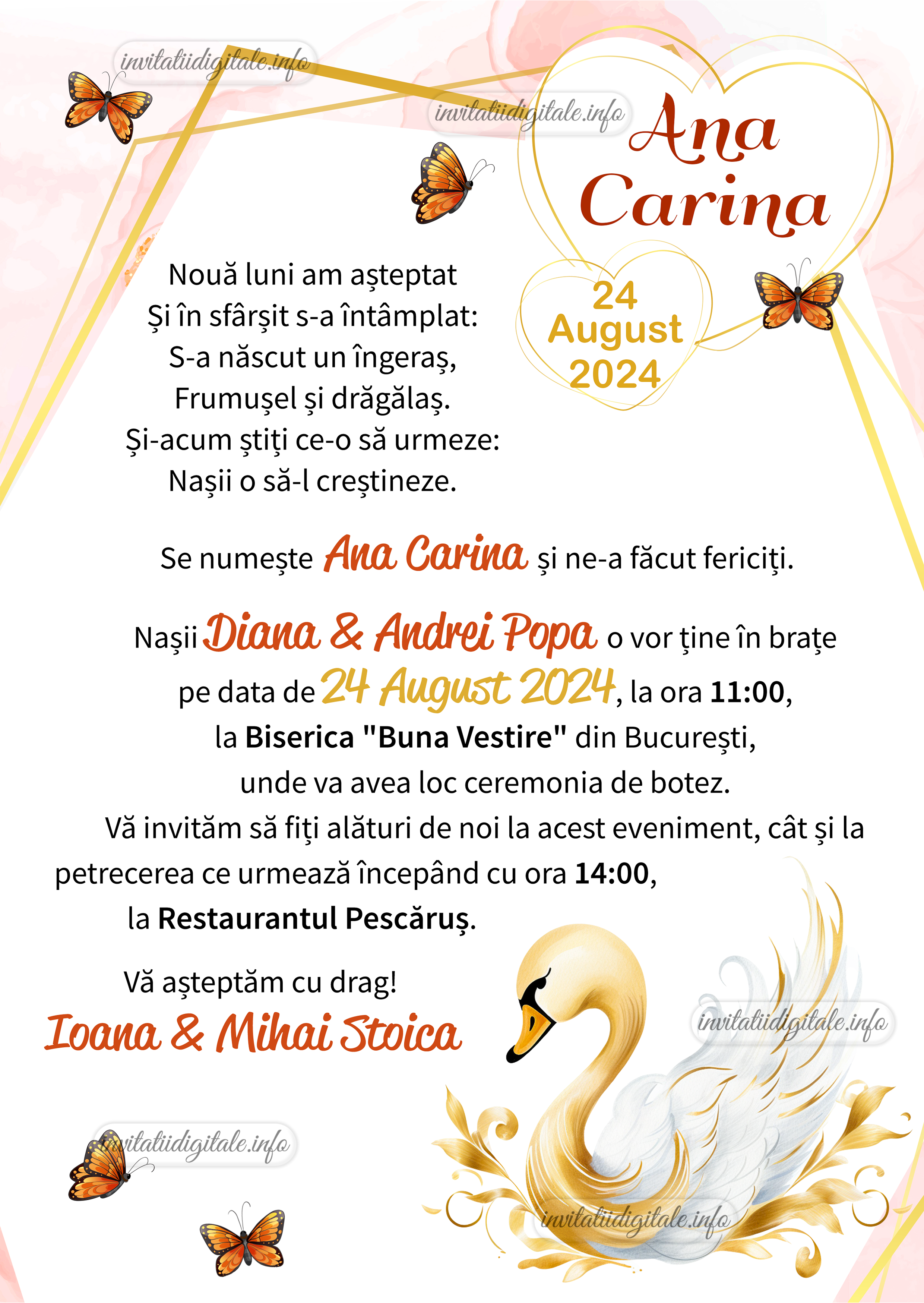 Invitatie digitala botez fetite – Lebada – IB-19