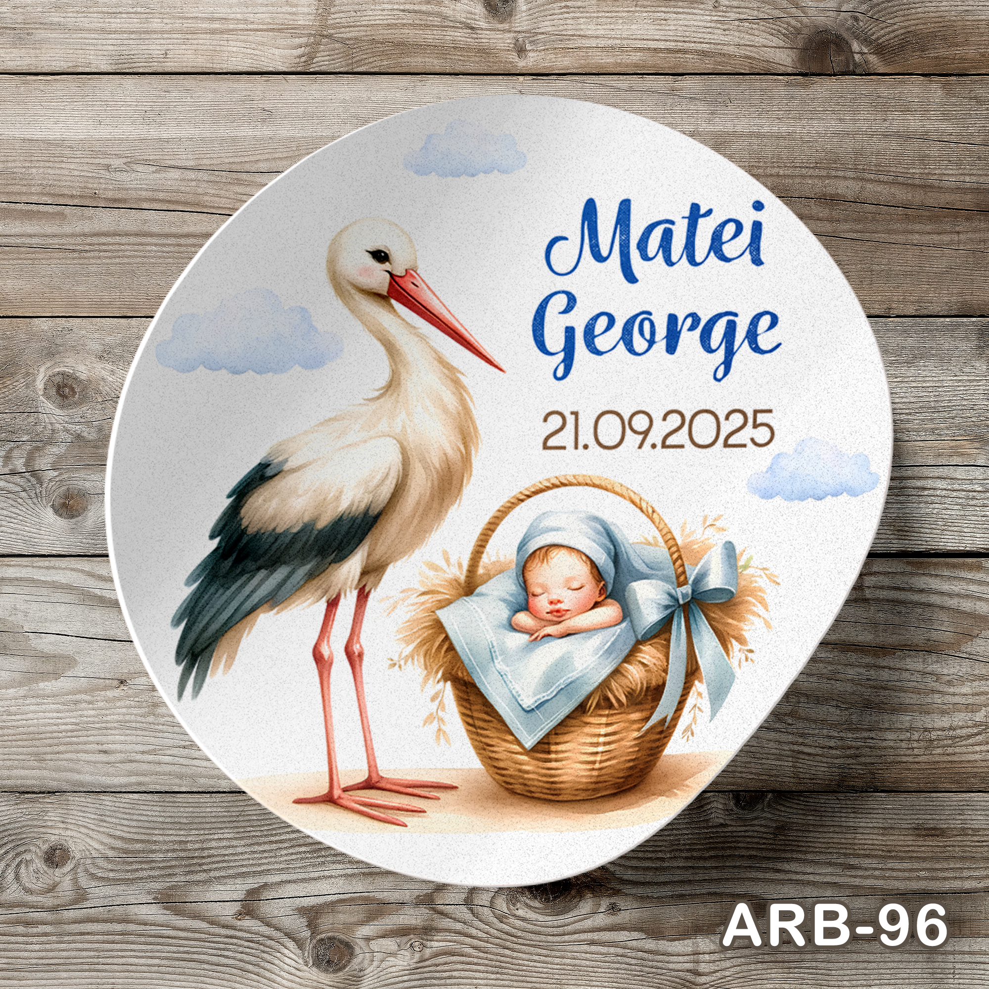 • Personalizare: numele copilului, data evenimentului și un text scurt opțional
