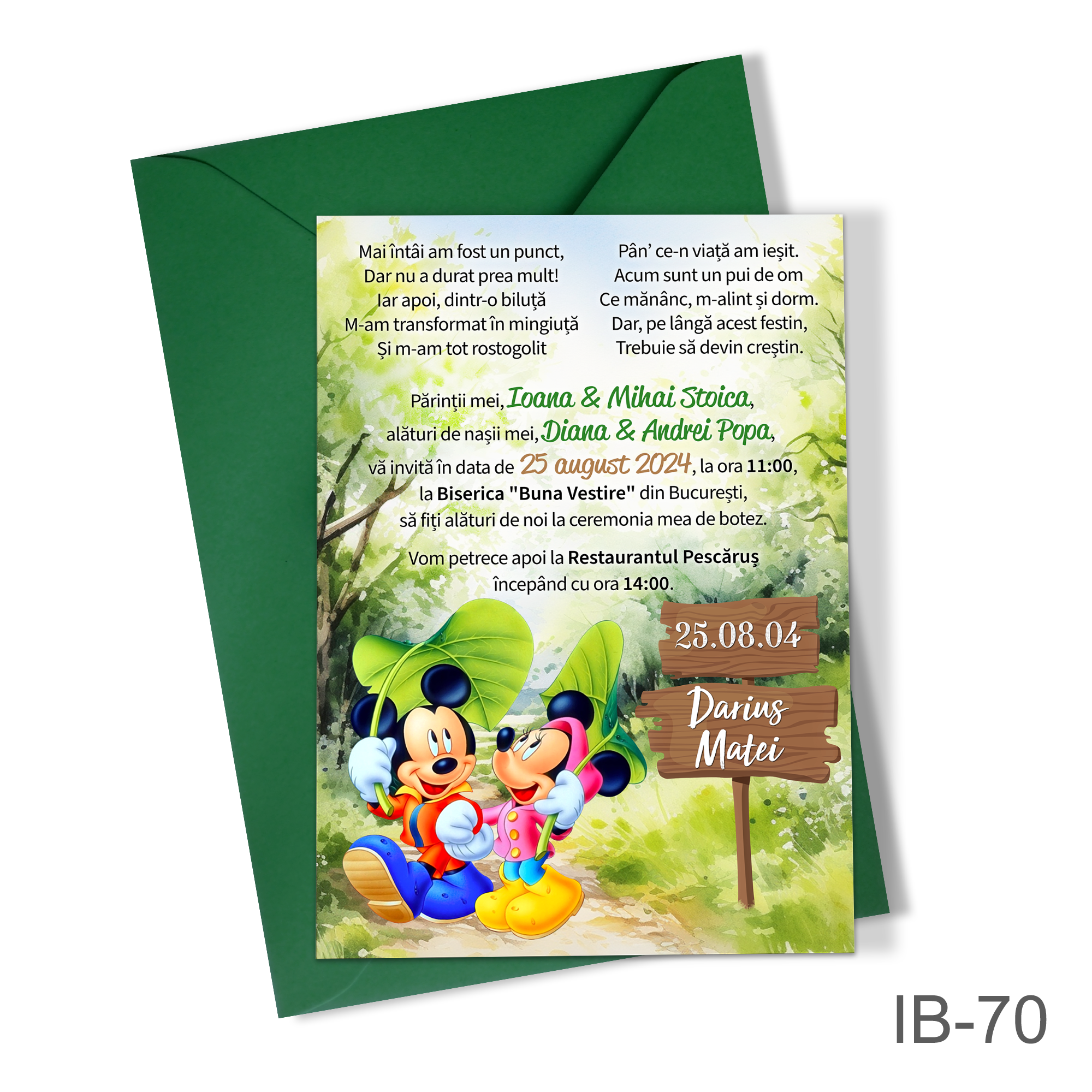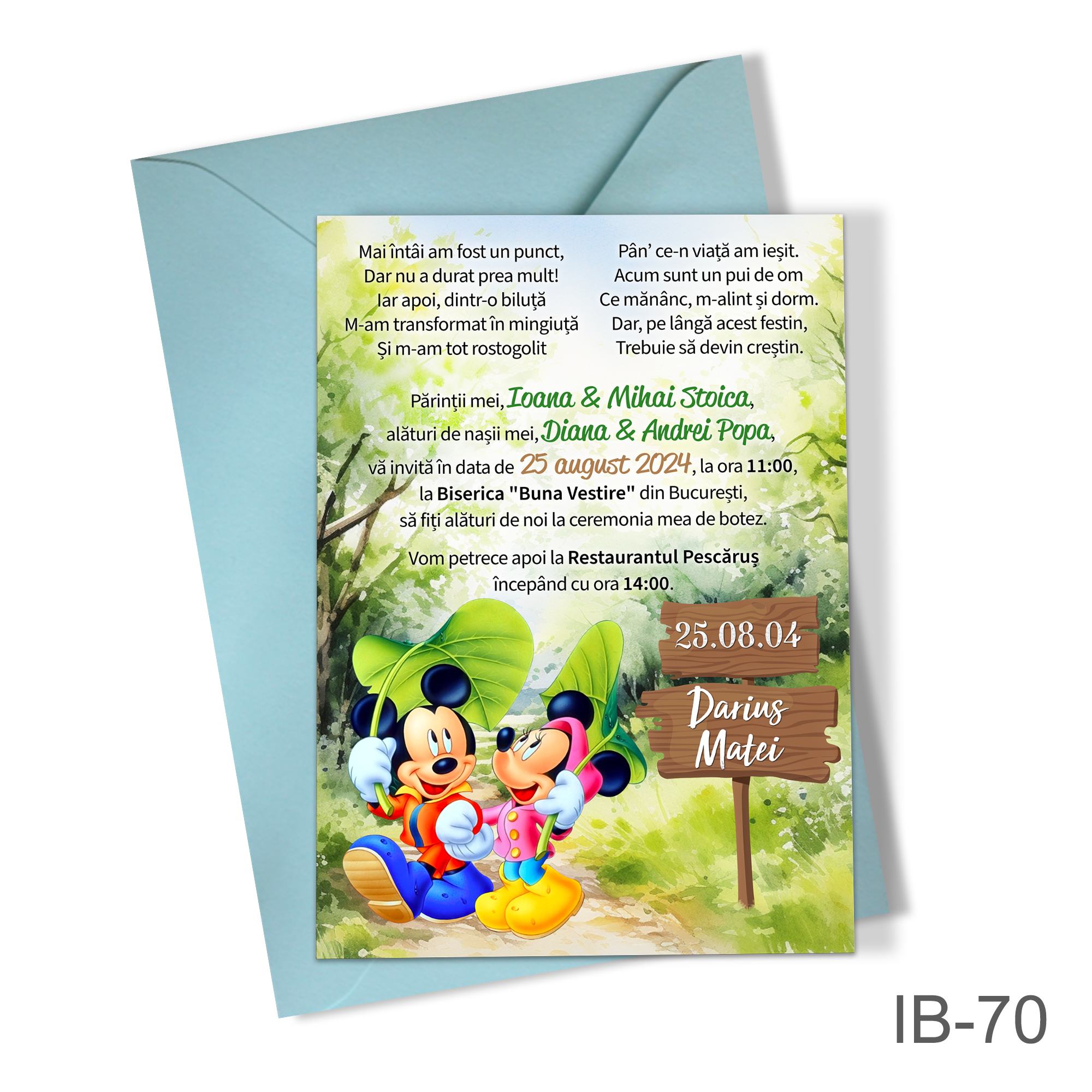 Invitatii botez baieti cu plic colorat – Mickey si Minnie Mouse – IB-70