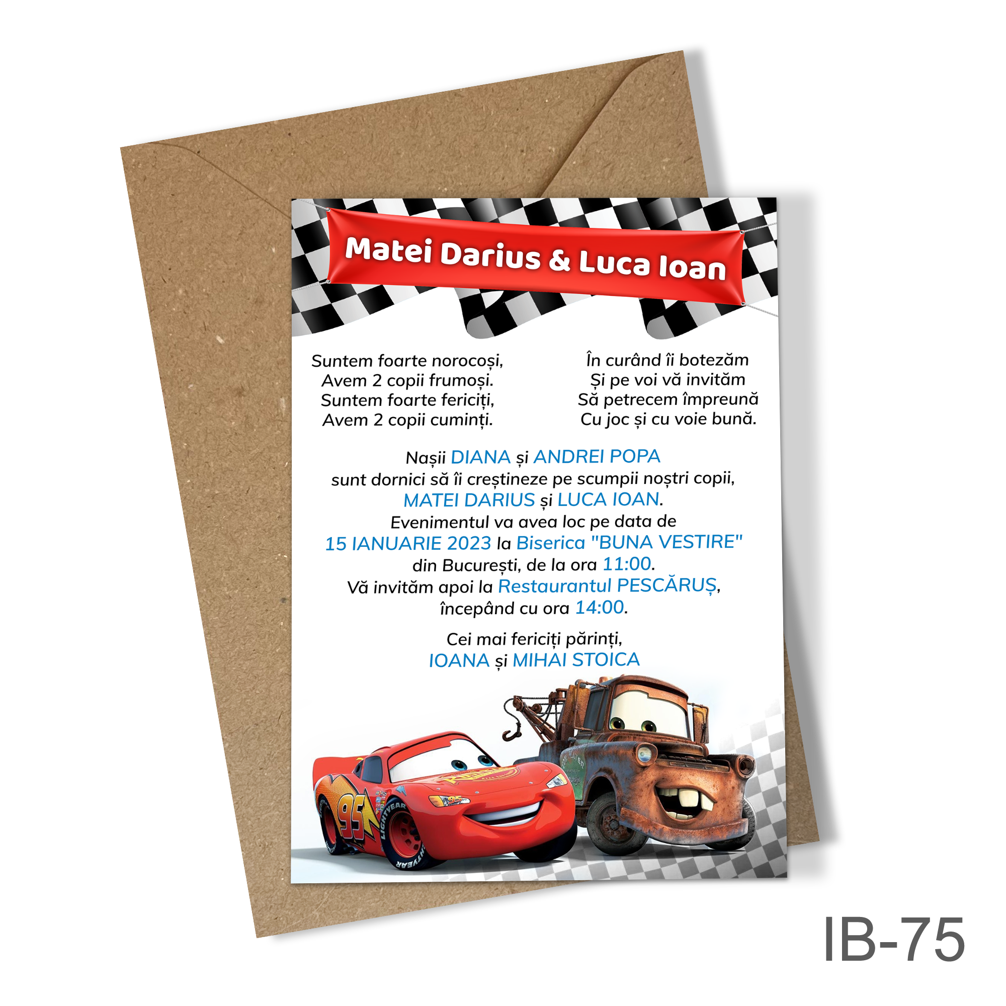 Invitatii botez gemeni Cars – Simple – IB-75