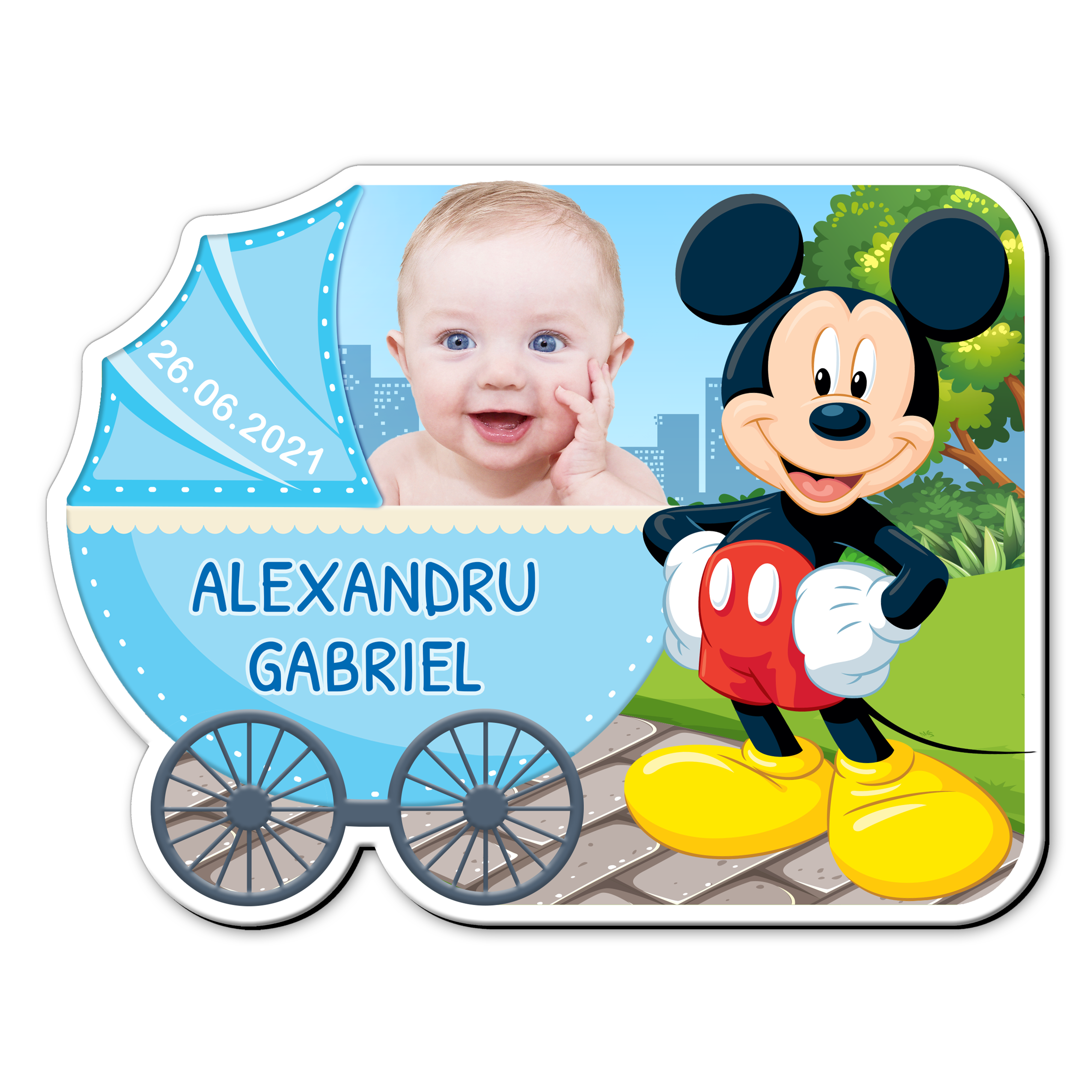 Marturii botez magnetice Carucior – Mickey Mouse – MFC-01